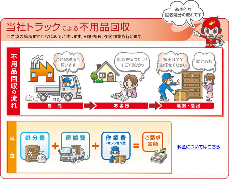 お客様より回収した不用品は廃棄物の処理法に基づき適正に処理されます。