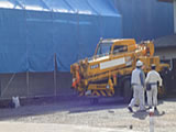 現場には0.45サイズのユンボがあるので、それを使い、大型トラックに積込みもできる。 |