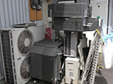 業務用のエアコン外機が6台くらいある。重量は1台約100kgくらい。 |