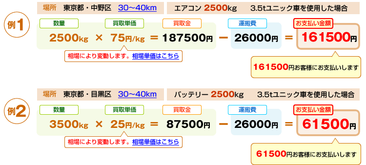 | 買取金額から運搬費を差し引いた金額が当社からお客さまへお支払い金額となります。 |