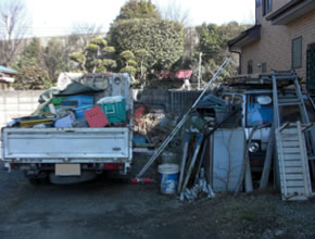 | 今日の現場は昨日回収にお伺いしたお客さまの所です。昨日は不用品をすべて回収しましたが、今日は2台の車、軽の1BOXと2tトラックを引取りにお伺いします。引取に使う車両は、ユニック車とローダー車の2台です。今回の引取りには、1つ問題点がありま す。この駐車場に入るためには細いクランクがあり、ユニック車は入れますがローダー車は長いので入れません。また、車のサイズ理由からユニック車には軽 の1BOX、ローダー車には2tトラックを積込むことになります。2tトラックのバッテリーが生きていれば、自走してローダー車の所にいけるのですが・・・。もしダメの場合はユニック車で牽引するしかありません。さてどうなるでしょうか? |