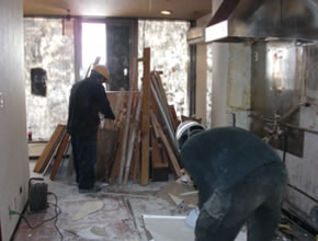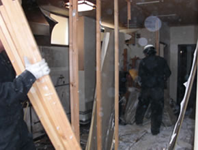 | まずは壁をバールなどを使って壊していきます。 |