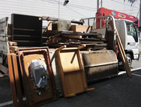 | 廃棄の木くずは整理しながらトラックに積み込んでいきます。 |