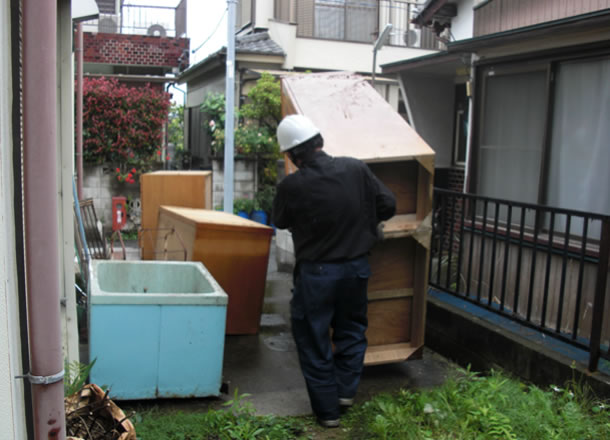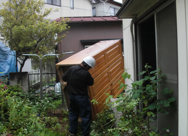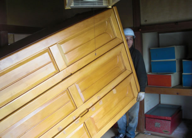 大きな衣装タンスも2人で運びだします。ヨイショ!