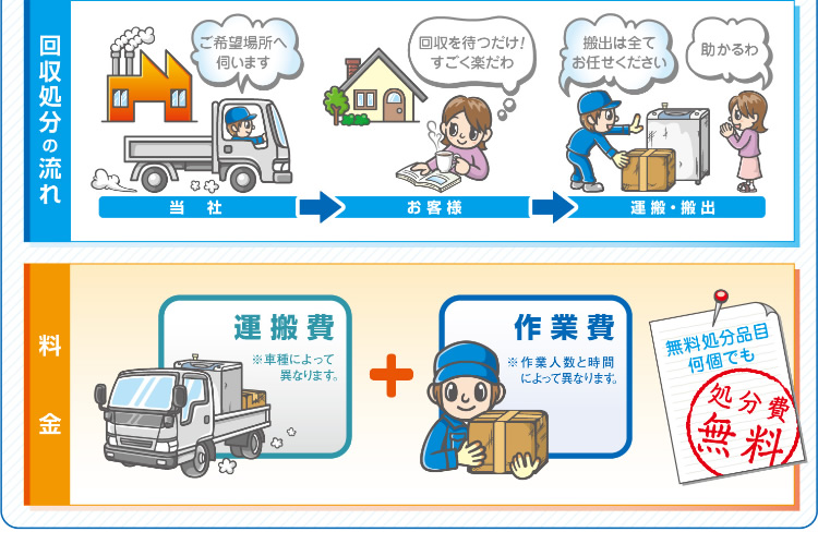 ただし回収に伺う際の運賃(車両代)+作業費(人件費)は別途となります。